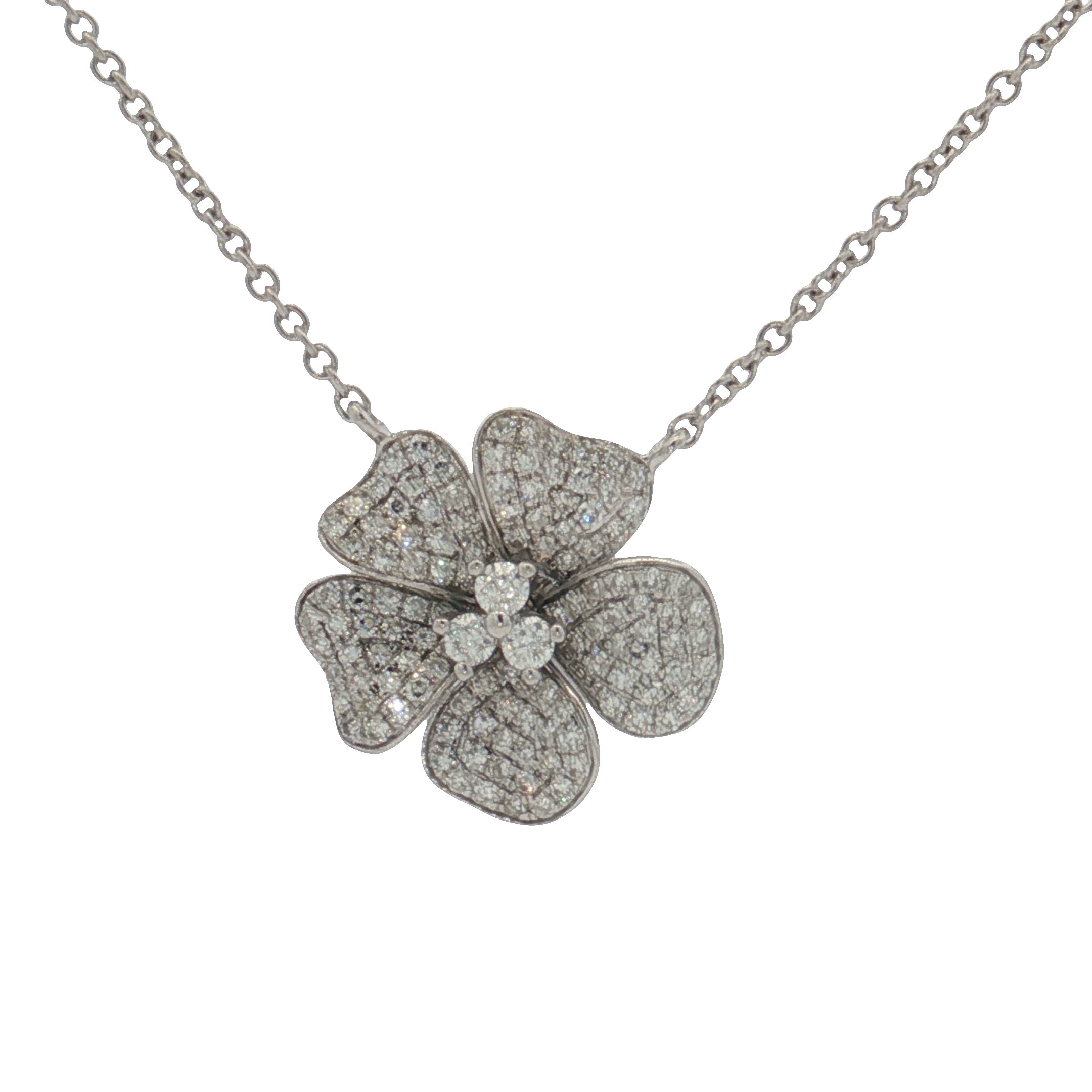 14 Karat White Gold Diamond Flower Necklace Trinity Jewelers  Pittsburgh, PA