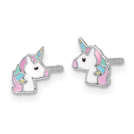 Children's Sterling Silver Enameled Unicorn Earrings Trinity Jewelers  Pittsburgh, PA